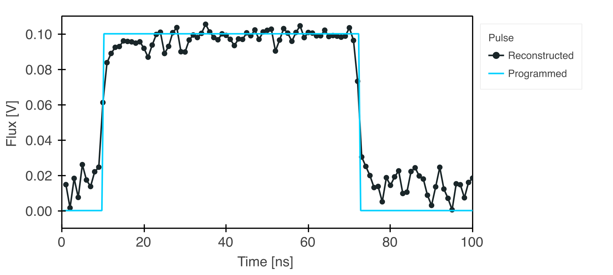 This experiment reconstructs a flux pulse in the time domain using the methodology described in reference 1.