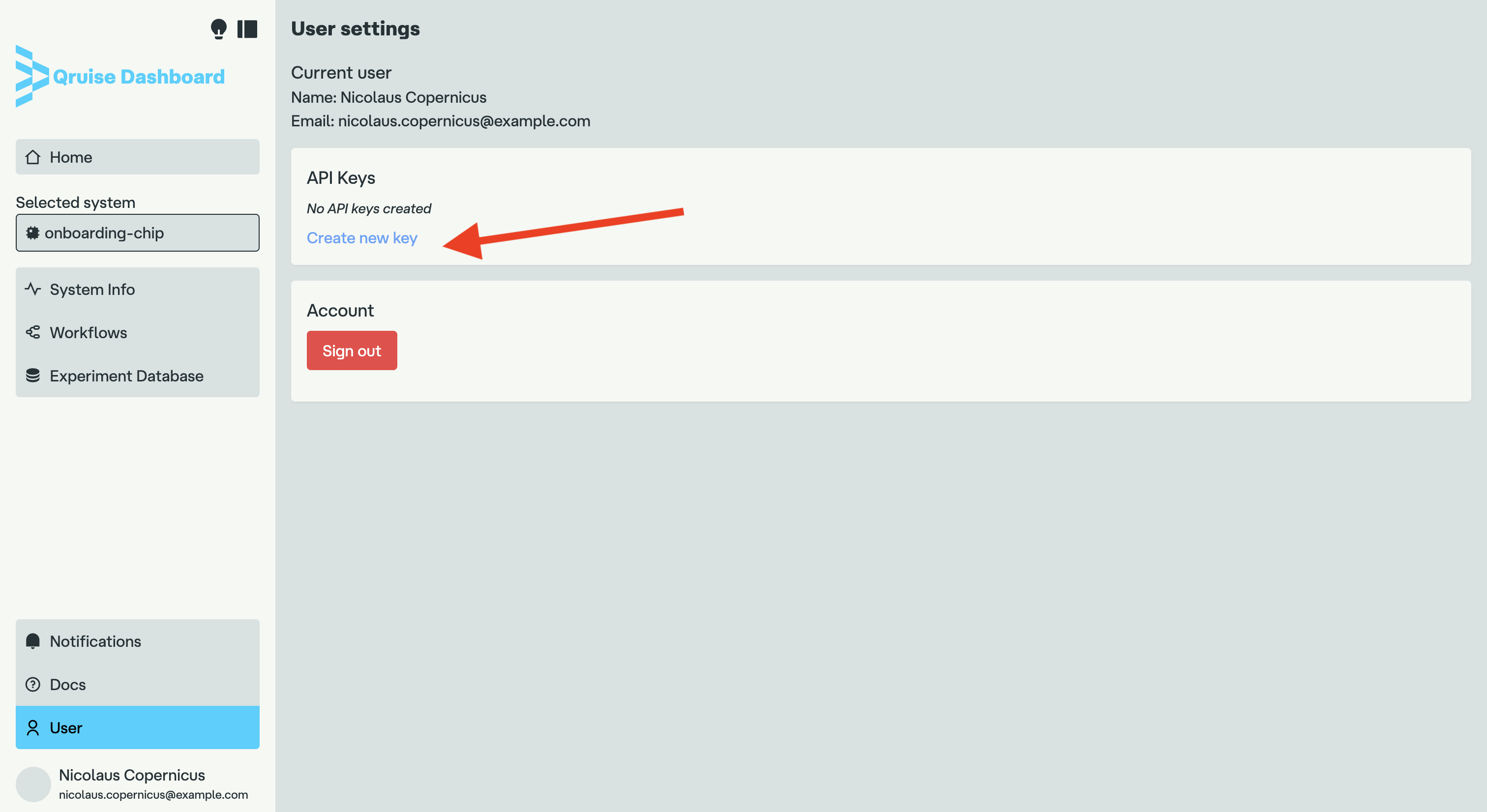 The first step is to create an API token. Start by navigating to the QruiseOS dashboard in your web browser. If you are not signed in, you will be automatically redirected to the login page.