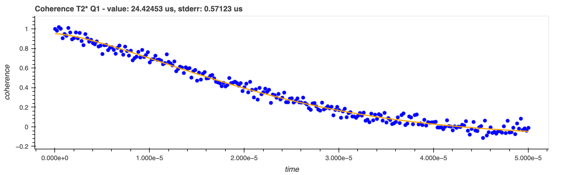 \(T^{*}_{2}\) is determined by fitting the stretched exponential function to the real part of the normalised coherence data: $\(f(t) = A e^{-\left(\frac{t}{T^{*}_{2}}\right)^\alpha}\)$