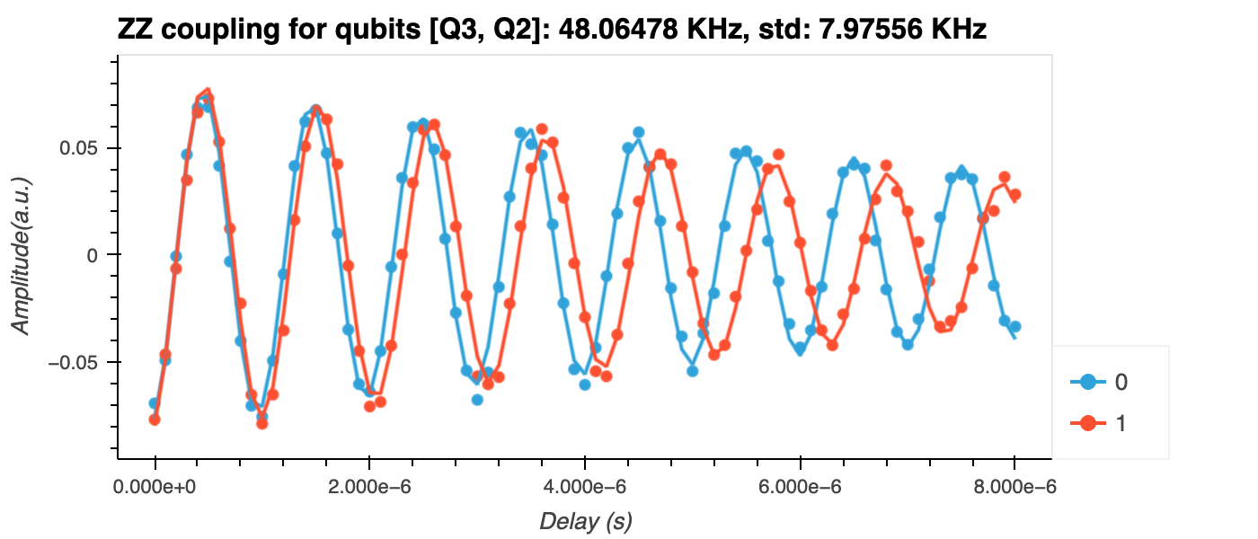 It's worth noting that, in a tunable qubit-qubit coupling architecture, \(\xi\) also depends on the coupler flux2. In this experiment, however, we only investigate the ZZ residual coupling with no flux over the coupler. (To determine the ZZ coupling as a function of flux, see the ZZ Coupling Per Flux experiment.)