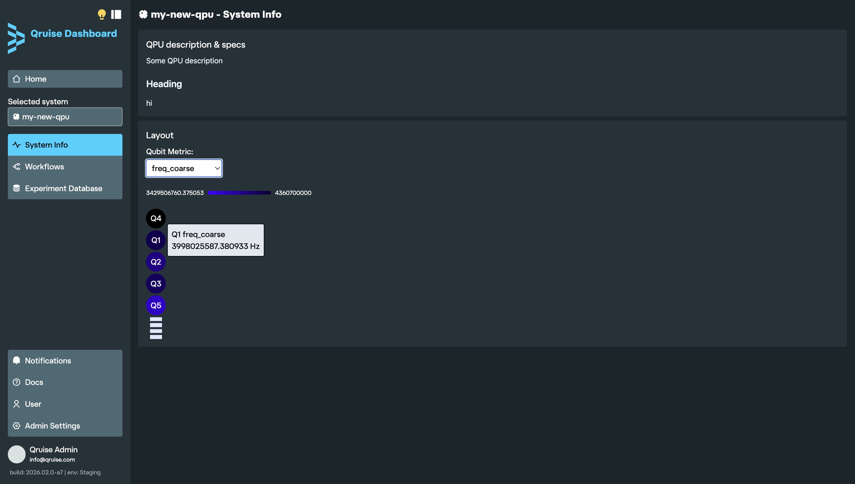 - the QPU description & specs panel contains relevant information about the QPU. This can be edited by admins in Admin Settings → QPUs.