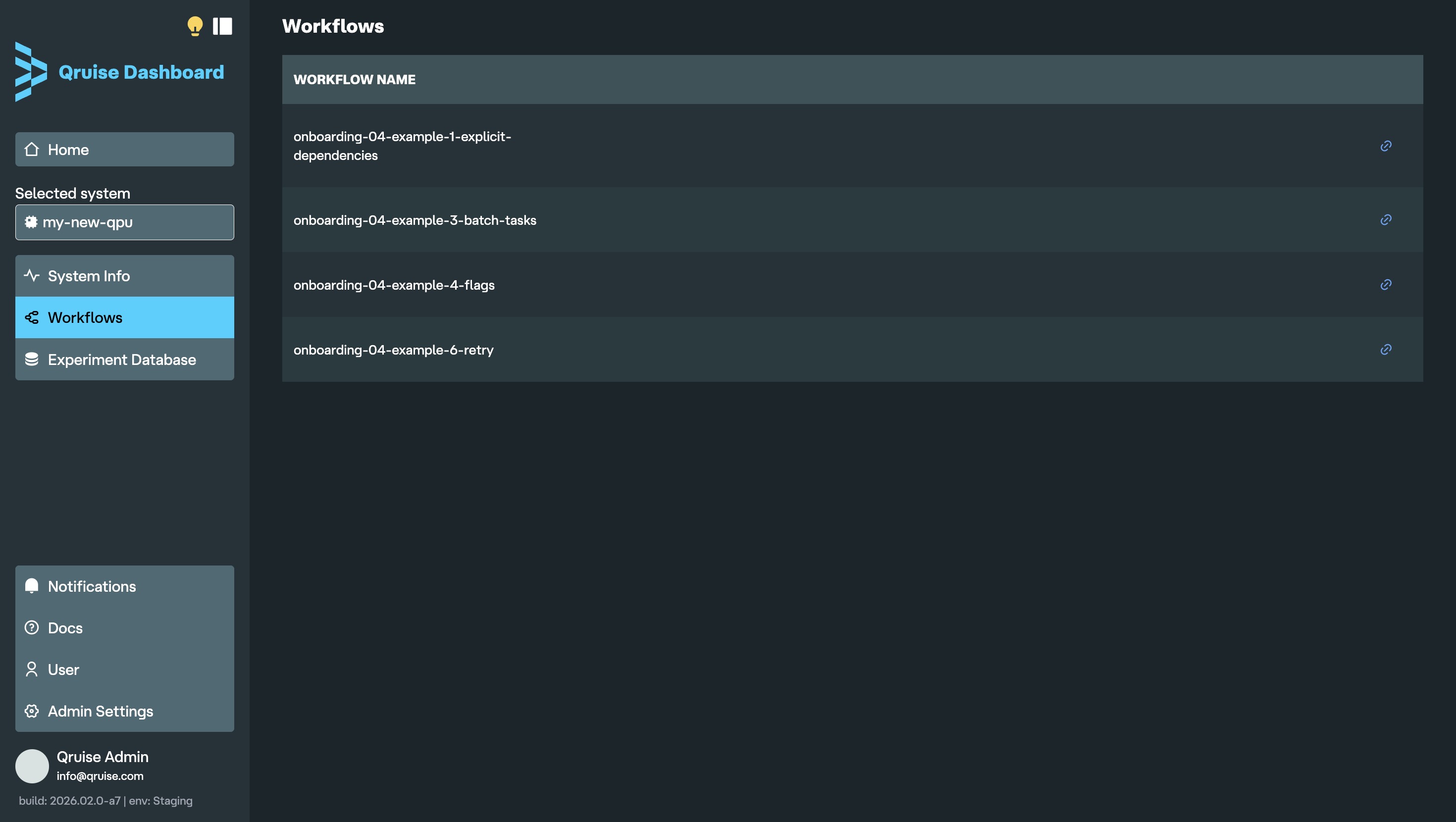 The QruiseOS dashboard makes it easy to keep track of all your QPU data. From high-level overviews of devices and workflows to the results of individual experiments, it provides a clear, easy-to-use interface for exploring and understanding your quantum systems.